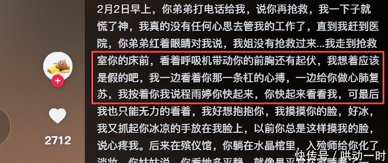 2月2日清晨,男孩刚洗漱完毕准备出门,手机突然响起——是程雨婷弟弟打来的电话。接通瞬间,他听见对方声音颤抖:“哥……姐姐昨晚睡下后再没醒过来……现在在医院抢救……”