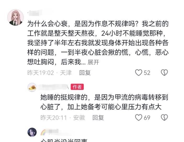 2月1日晚,她与男友视频通话至凌晨一点,聊的仍是复习进度与未来规划。或许正是这场深夜透支,让潜伏的心肌损伤加速恶化。
